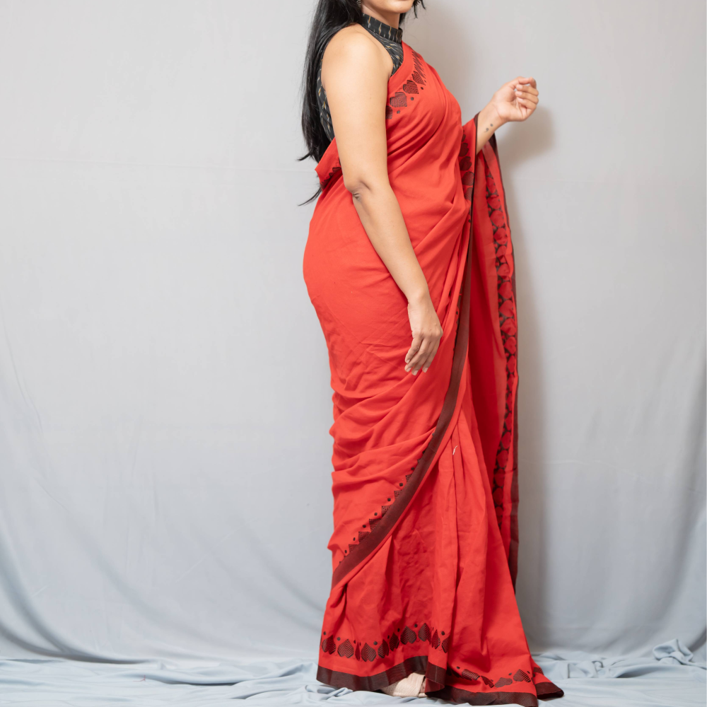 Aanchal - 1 minute Ready-to-wear saree in Red heart Khadi fabric