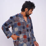 "-This is a modern twist on a traditional kurta with signature side pockets. The cuffs can be folded and buttoned to make the sleeves shorter. -This is a unisex garment with relaxed and comfort fit. It has side slits and box pleats for ease of movement. -This is an Ajrakh hand-block printed kurta dyed using natural dyes. The fabric is co-designed with artisans from Kutch, Gujrat. -Actual colour may vary slightly from the pictures." - S01_AJ_RP_01_01M