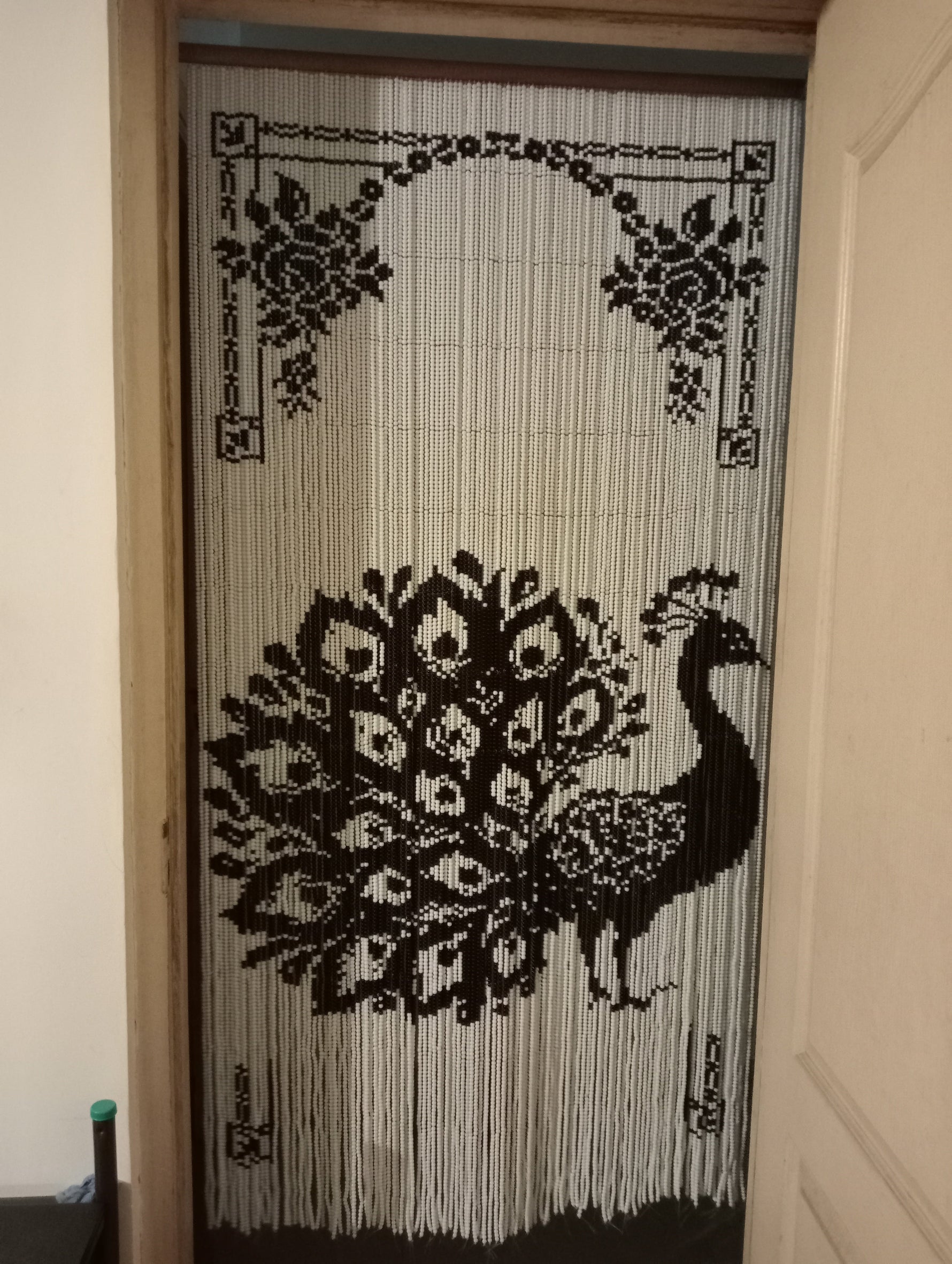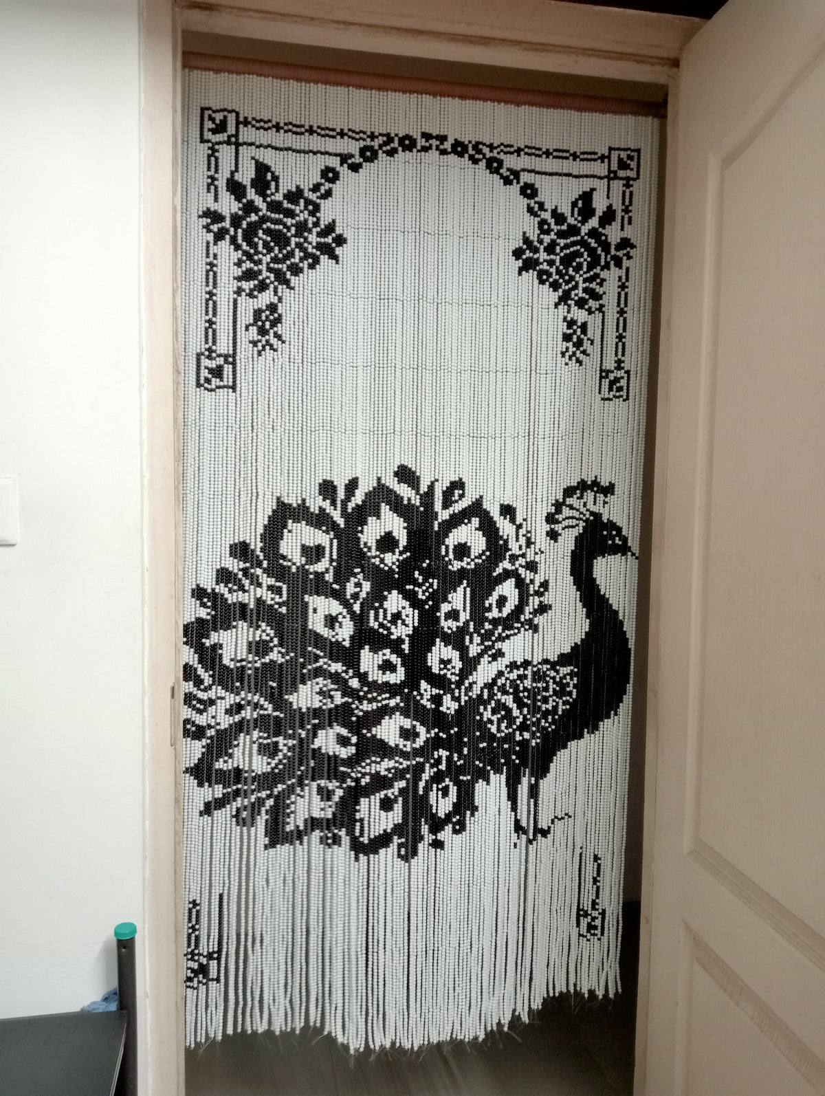 Inspired by the timeless elegance of vintage Chinese and Japanese bead curtains, this stunning peacock glass bead curtain is meticulously handmade. I chose the auspicious peacock motif as a symbol of "jaya" (victory)—a beautiful reminder that all internal and external challenges can be overcome with faith. Crafted for longevity, these bead curtains are true heirloom pieces designed to be passed down through generations.