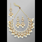 Elegant Gold Plated Pearl and Drop Kundan Studded Choker Necklace Set Elevate your style with this stunning gold plated necklace set, expertly crafted with pearls and kundan drops. Perfect for special occasions, weddings, or everyday wear, this set is sure to make a statement. *Set Includes:* - 1 Choker Necklace - 1 Pair of Earrings - 1 Maangtikka *Dimensions:* - Necklace Length: 22 cm (8.66 in) - Necklace Width: 3.7 cm (1.46 in) - Earrings Length: 6.5 cm (2.56 in) - Earrings Width: 2.5 cm (0.98 in) - Maangtikka Length: 12.9 cm (5.08 in) - Maangtikka Width: 2.5 cm (0.98 in) *Material:* - Metal Type: Alloy - Plating: Gold Plated - Stones: Kundan Drops and Pearls *Warranty:* - 3 Months Guarantee in Polish This exquisite necklace set is designed to add a touch of elegance to any outfit. With its intricate details and premium finish, it's perfect for women who appreciate fine jewelry. Order now and experience the beauty of Indian craftsmanship!