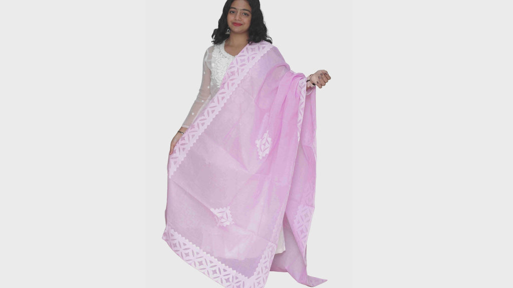 Applique Cut Work Hand Made Organdi Dupatta (Pink)