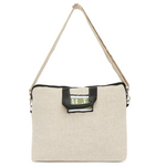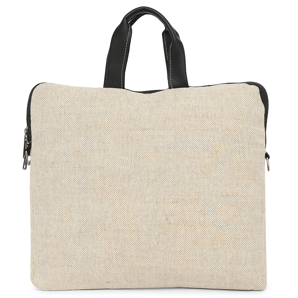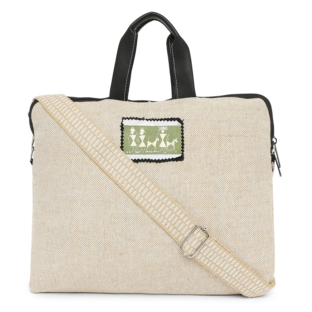 A beautiful handloom creation of jute. This laptop bag is beige in color and simple. Comfortable to carry, spacious with an inner lining of cotton, 1 zipper pocket and open pocket inside and a hand-painted patch of warli painting. It has a shoulder strap and a zipper opening