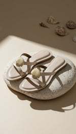 Keep it effortlessly chic with our cream shell-embellished flats. The soft neutral tone paired with a gold seashell detail makes them versatile and easy to style with brunch dresses, summer outfits, or smart casuals. Elegant and comfortable, these flats are perfect for both day and night.