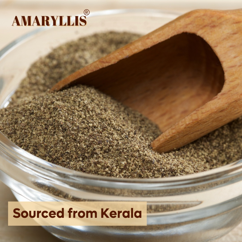 Kerala Black pepper Powder is one of the most commonly used spices worldwide. It's made by grinding peppercorns, which are dried berries from the vine Piper nigrum