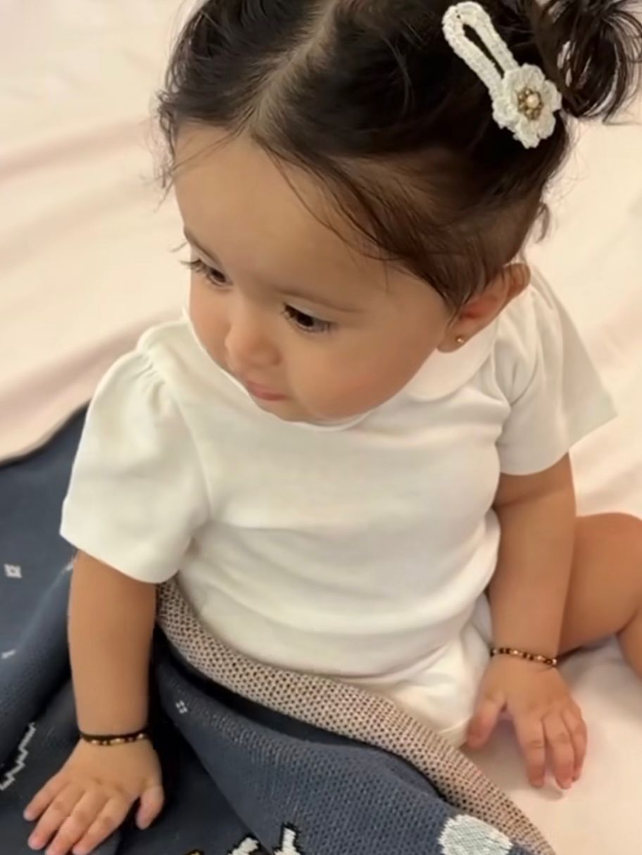 Delicately handmade with premium cotton yarn. Lightweight, soft, and gentle on little scalps — the cutest finishing touch for any outfit.