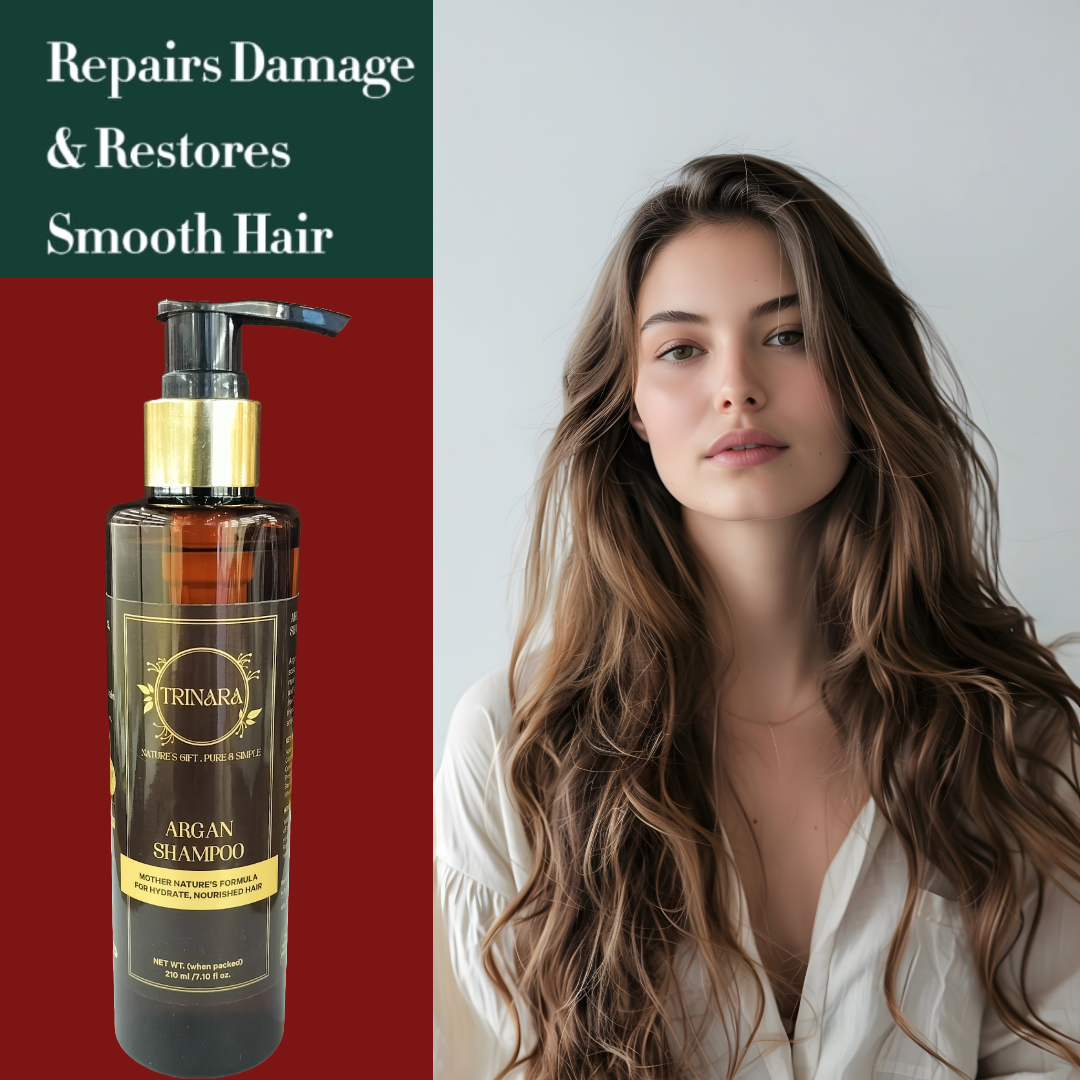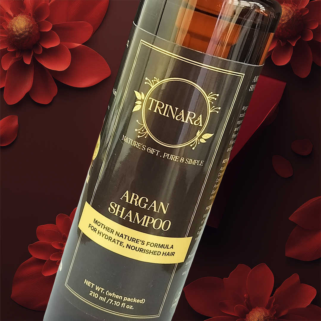 Transform your hair care routine with Trinara Organics Argan Shampoo 210ML, enriched with pure argan oil to deeply nourish and revitalize your hair. This gentle yet effective shampoo restores natural shine, smoothness, and strength, while reducing frizz and breakage. Suitable for all hair types, it cleanses without stripping essential moisture, leaving your hair soft, silky, and healthy-looking. Perfect for daily use, it brings the goodness of nature into every wash, giving you salon-like results at home.