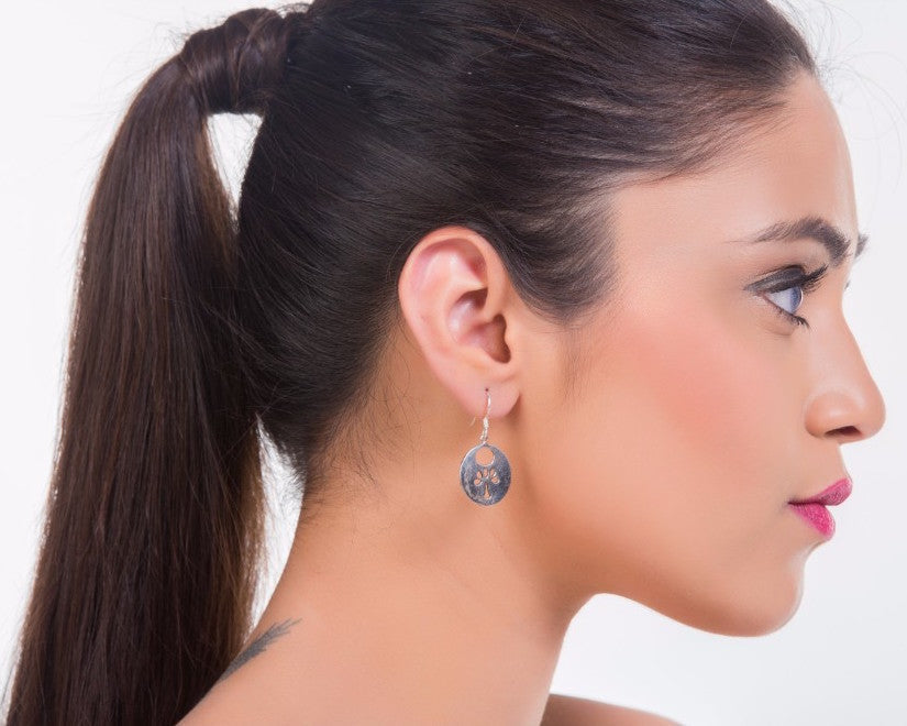 Look cute in the delicate yet fancy in these silver earrings. Product weight is 4.5gms per pair. Metal used: Sterling Silver (92.5%). For all you want to know about 'sterling silver' metal and how to care ; maintain your sterling silver jewelry, read here. Dimensions: Length 3.2 cm. Care Instructions: Rinse the jewelry with water, then dry and buff with a soft cloth. Keep it away from perfumes. Store it in airtight vacuum bag, wrapped in a soft cloth.