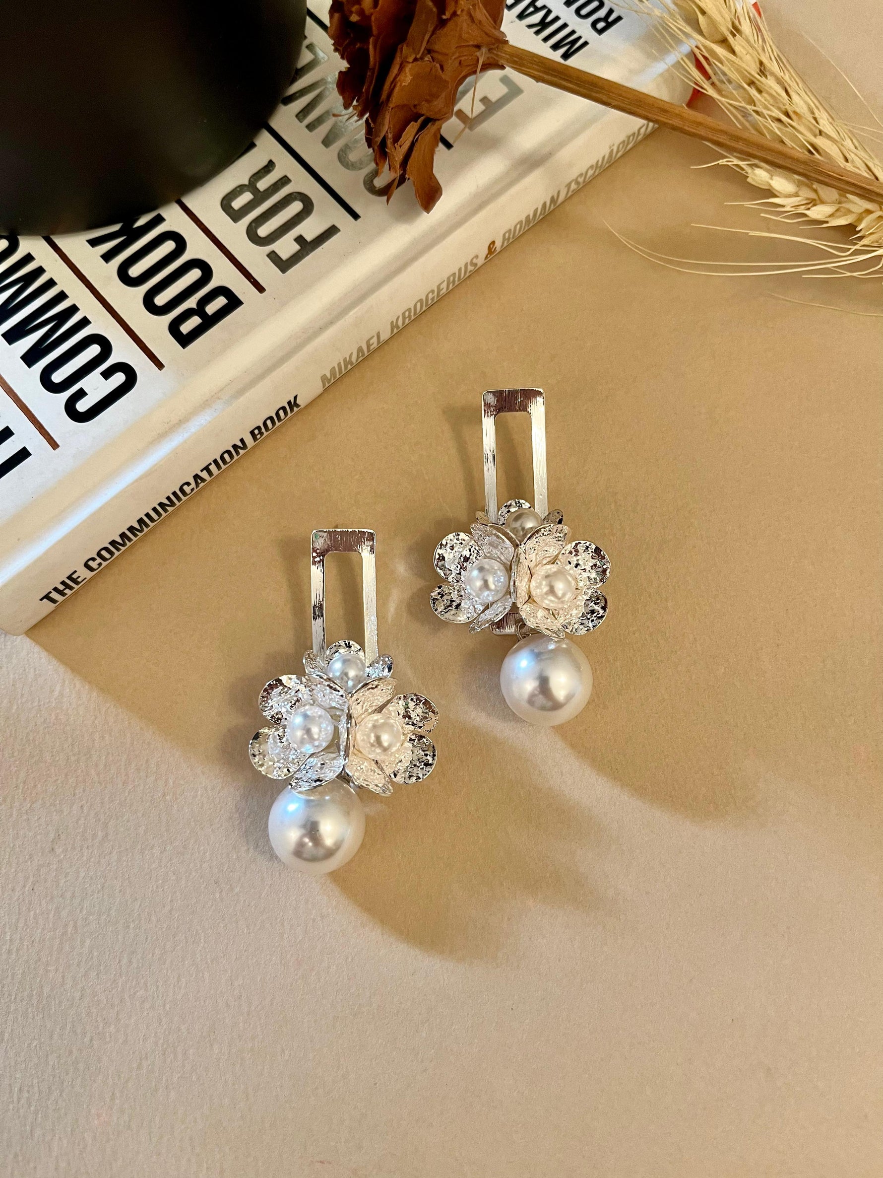 Silver Pearl Statement Earrings