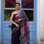 Experience the timeless elegance of our Cotton Hand Block-Printed Saree, a masterpiece of traditional craftsmanship and contemporary style. Handcrafted with utmost care and precision by skilled artisans, this saree showcases the rich heritage of Indian textiles. Made from premium quality cotton, this saree offers a feather-light feel, ensuring comfort throughout the day. The intricate block-printing technique adds a touch of artistry, creating mesmerizing patterns of flora and fauna that dance gracefully across the fabric. Versatile and perfect for any occasion, whether it's a casual gathering or a festive celebration, this saree effortlessly complements your grace and individuality. Its soothing colors and delicate motifs exude a sense of grace and femininity, making it a cherished addition to your wardrobe. Embrace the beauty of handcrafted elegance and sustainable fashion with this exquisite cotton hand block-printed saree. Elevate your style quotient and make a statement that celebrates the rich cultural heritage of India. Own a piece of art that stands the test of time and never goes out of fashion. Discover the magic of tradition and modernity woven together in our exclusive collection. Shop now and treasure the essence of craftsmanship with our Cotton Hand Block-Printed Saree." Size- 6.5meter saree with blouse