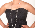 Graceful rope necklace beautifully combined with various versions of big size baroque pearls ; silver rings. Product weight is 115gms. Pearls used are all fresh water baroque in following forms : a) totally organic b) organic pearls silver hand painted c) pearl studded with 1mm and 2mm sized cubic zirconia. Metal base: Sterling silver. To know about 'Baroque Pearls', read here . Care Instructions: Keep away from any moisture/perfume. Avoid any solvent. After use, clean your jewelry with a cotton ball or a very soft cloth to remove any dust and dirt. When not in use, store the jewelry in box, wrapped in a soft cloth.