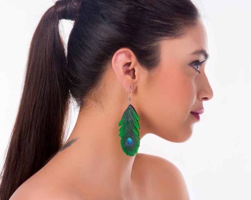 Mesmerize with these beautiful peacock feather, polymer clay earrings. These light weight earrings have a simple fish hook for wearing. Available In: Peacock feather color combo (shades of green/purple/gold/blue) Dimensions: Length 9 cm Care Instructions: Wipe it off with a piece of soft fabric. Avoid using any solvent. When not in use, store polymer clay jewelry in a box or a separate compartment.