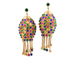 Be the jewel of a royal crown in these Moroccan Chandelier earrings. Wear it single ; make a statement for an ultra modern look OR enjoy the conventional pair. Total length: 8.5cms Material details: Base metal is copper, with gold plating. Stones are green garnet, synthetic pink/blue/yellow sapphire. To learn in detail about what is Kundan work and how it's created, read here . Care Instructions: Keep it away from spray perfume/deo/moisture. Store it wrapped in soft cotton cloth.
