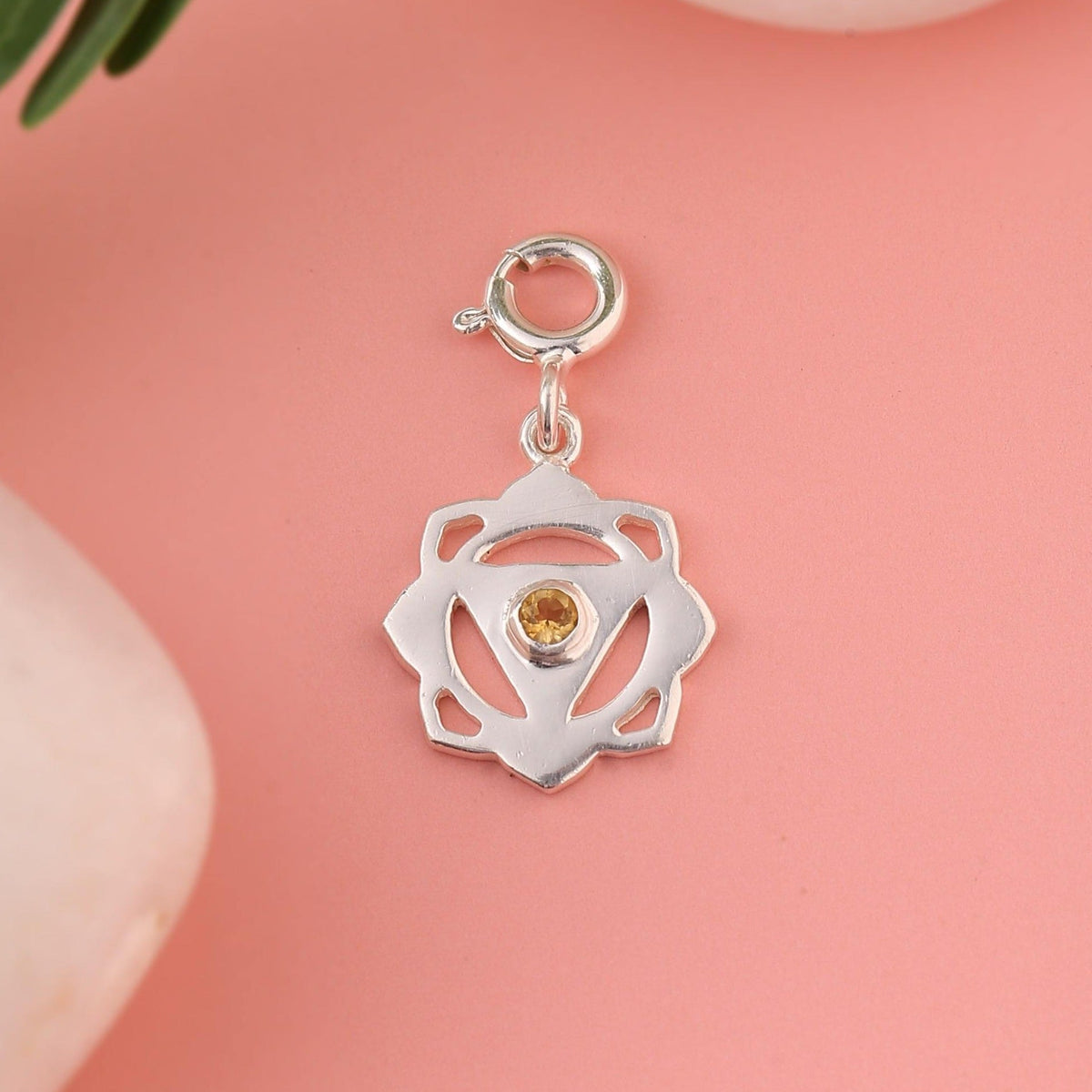 Manipura Chakra (Solar Plexus Chakra) located at the upper abdomen, in stomach area, is a chakra of our personal ability related to our self esteem. Manipura chakra charm is decoated with Citrine Gemstone and attached with a 5mm ring clasp, which can be used to clip the charm easily to your existing jewelry, or whichever way you may like to wear. Product weight is 1.2 gms. Gemstone used: 0.03 carat Citrine, a gemstone believed to opening ; balance the Solar Plexus chakra, bringing in positive energies for our body. Dimensions: Total length with clasp 2.1cm, Charm without clasp 1.2*1.2cm(L*W) Metal used: Sterling silver This charm can be worn as: Hanging charm in a bracelet As pendant to a necklace or As a pretty addition to your bag charm Care Instructions: Donot leave it exposed to air / water / chemical (deo or perfume). Do not bend or twist the piece as its delicate. Periodically clean the jewelry with soft cotton cloth ; cosmetic brush (never with paper) to reach out to inside small parts. Be sure to dry the jewelry well to keep its brilliance ; shine. The style is intricate pieces of delicate jewellery. Store it separately in the the provided box wrapped in soft cotton fabric or provided dust bag. Never store along with other jewelry pieces to avoid scratches or pressed under other heavier jewellery pieces.