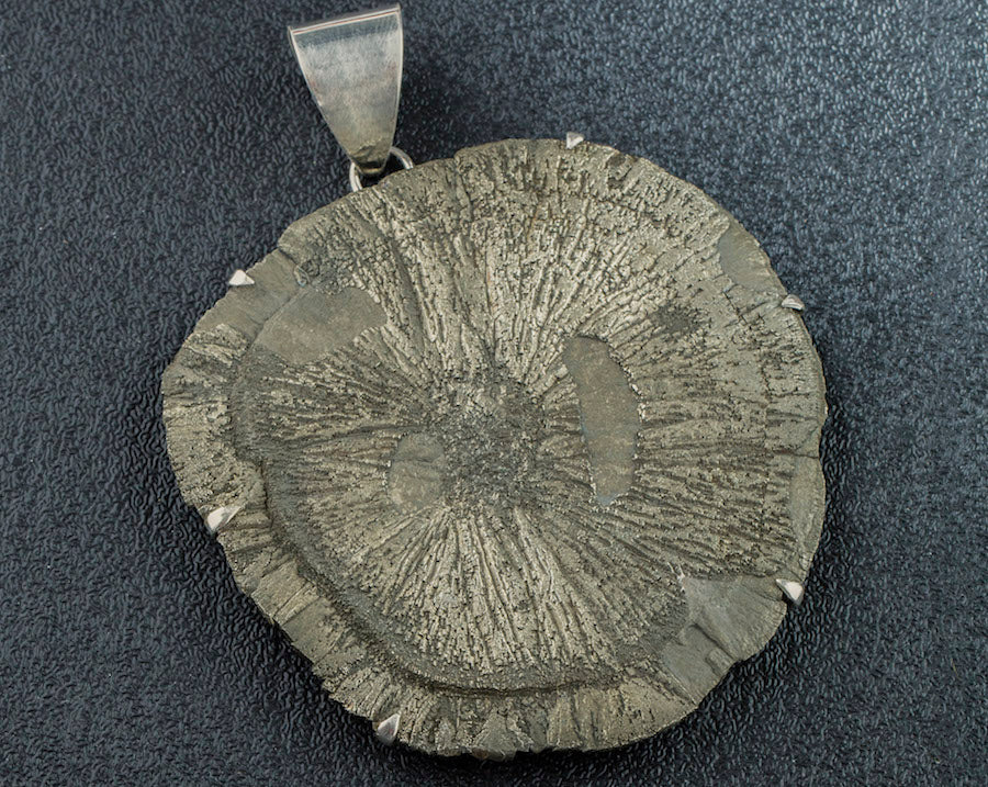 Magnificent pendant made of Suns Pyrite disc. The stone has beautiful texture spread with gold lustre, that just looks like the sun rays. Sturdy wire framing is given at back for great support, with required amount of prong setting, in order not to disturb the majestic look of this organic stone disc. Weight of pendant varies between 205-225gms. Metal used: Sterling Silver Stone used: Pyrite Sun (Origin - Illinois). This stone strengthens willpower by energizing the body chakras. To learn more about this beautiful stone, read here . Dimensions: Pendant diameter 10-11cm Style can be ordered just as pendant which will then be shipped with either of the following string options, as per your choice, at no extra cost: option A: 5mm thick silver-plated snake chain option B: black thick silk thread cord Option to order sterling silver chain separately for this is also available. Please connect with us, if you wish to do so. Care Instructions: Do not leave it exposed to air / water / chemical (deo or perfume). Store it wrapped in soft cotton cloth inside the box provided.
