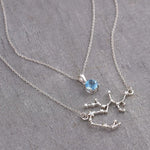 Delicate double layered neckpiece with Sagittarius constellation pendant ; Blue Topaz birthstone pendant strung in individual chain, which are joined together as a single neckpiece. Style has back opening with a clasp ; 1 inch length extension. Product weight is 6.6gms. SAGITTARIUS They are adventurous, extravert and friendly. They are known to have the purest heart but the harshest tone since they don't like to filter their opinions. They are honest and tactless while speaking and often end up offending people. Blue Topaz is their gemstone, which promotes harmony ; relaxation, helping in effective communication. Metal used: Sterling Silver Stone used: Blue Topaz 1.8 carat. To learn in detail about Topaz, read here . Dimensions: Chain length 15" ; 18", constellation pendant length 3cm width 2.5cm, 7mm Blue Topaz prong set in a collet. Care Instructions: Donot leave it exposed to air / water / chemical (deo or perfume). Do not bend or twist the piece as its delicate. Store it wrapped in soft cotton cloth inside the box provided. Wipe the stone using soft cotton cloth. Be sure to dry the stone well to keep its brilliance ; shine, but only with soft cloth, never with paper.