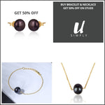 This gifting combo from our collection 'SIMPLY U' includes Tahitian Pearl necklace, bracelet and stud earrings. Base metal of this jewelry is sterling silver, with 18carat gold micron plating.