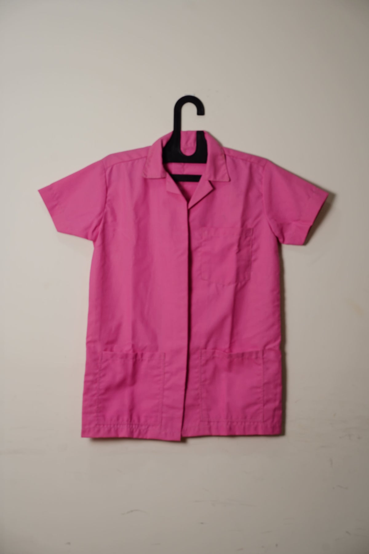 The clean, structured design features a classic collar, front button closure, and practical pockets for carrying essential tools and accessories. Its unisex fit makes it suitable for both men and women.