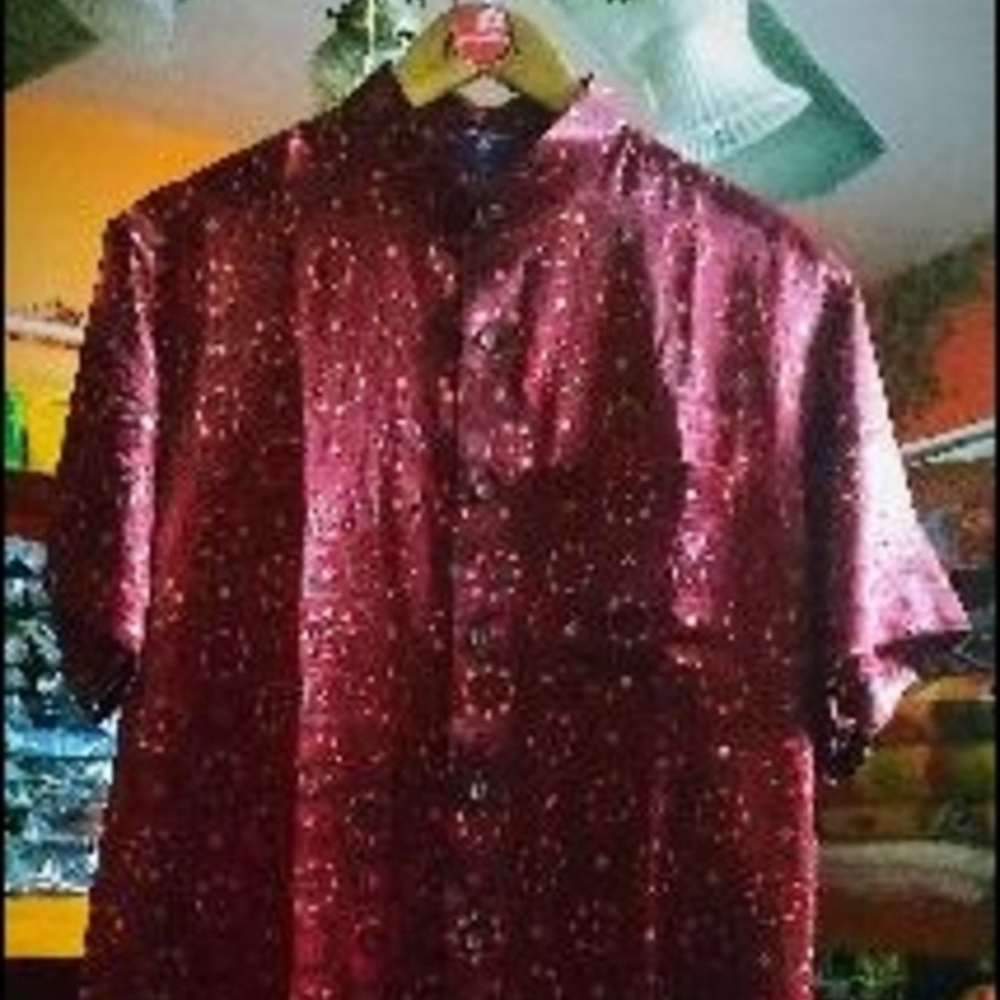 Luxurious Designer Silk Shirt. Description : Versatile Indian shirt , featuring intricate botanical prints inspired from Nature . Crafted using Hand Block printing in rich luxurious Premium Mashru Silk. The fabric is Gorgeous, Breathable, and super comfortably Classy. Fit: Regular Straight fit. Size : 40 Collar : Straight Spread Italian Collar. Buttons: Crafted Wooden. Color : Olive Green. Silk: Premium Mashru Silk ( Vegan) / Cruelty Free Style Tip: Wear it Casually pairing it with pair of Chinos pants or denims. Coupled with Mocachins.