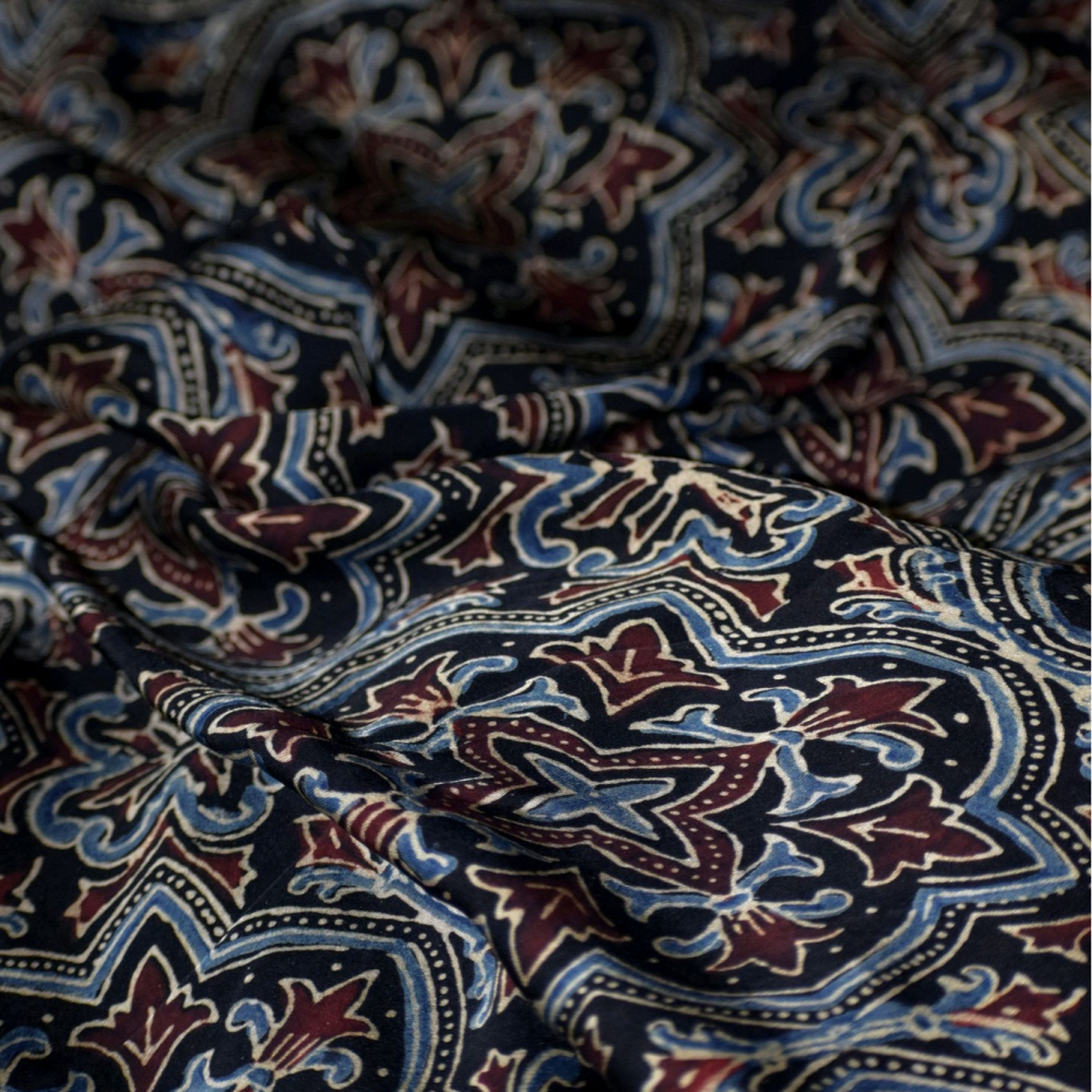 MANDALA - Ajrakh Hand Block Printed Signature Work Silk Saree