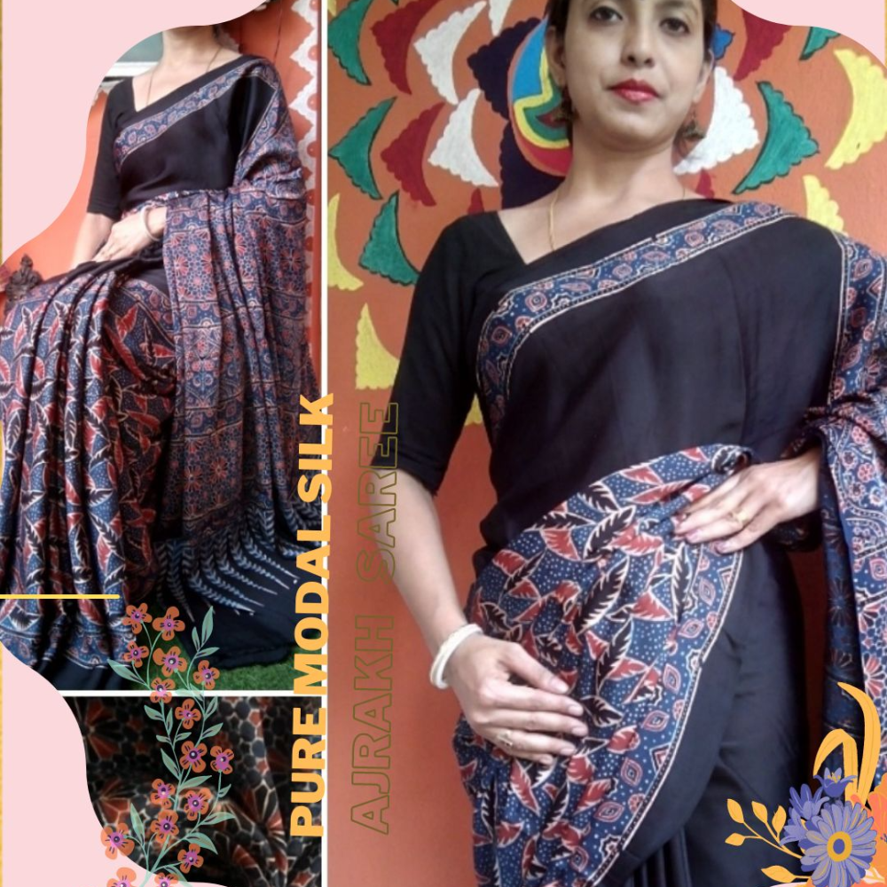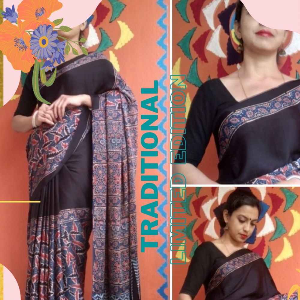 PARNO - Limited Edition Ajrakh Hand Block Printed Modal Silk Saree