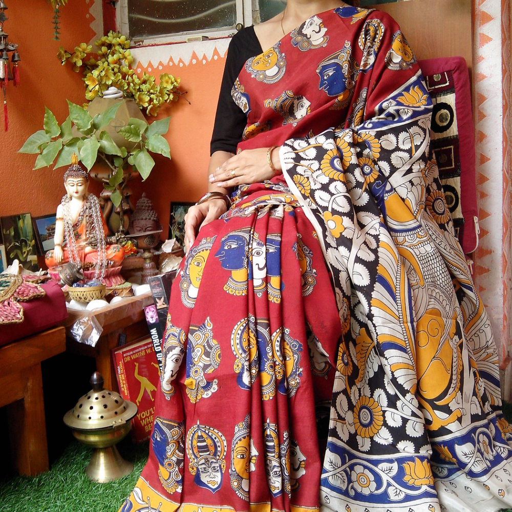 MUDRA - Traditionally Handblock printed Kalamkarri Silk Masterpiece Saree