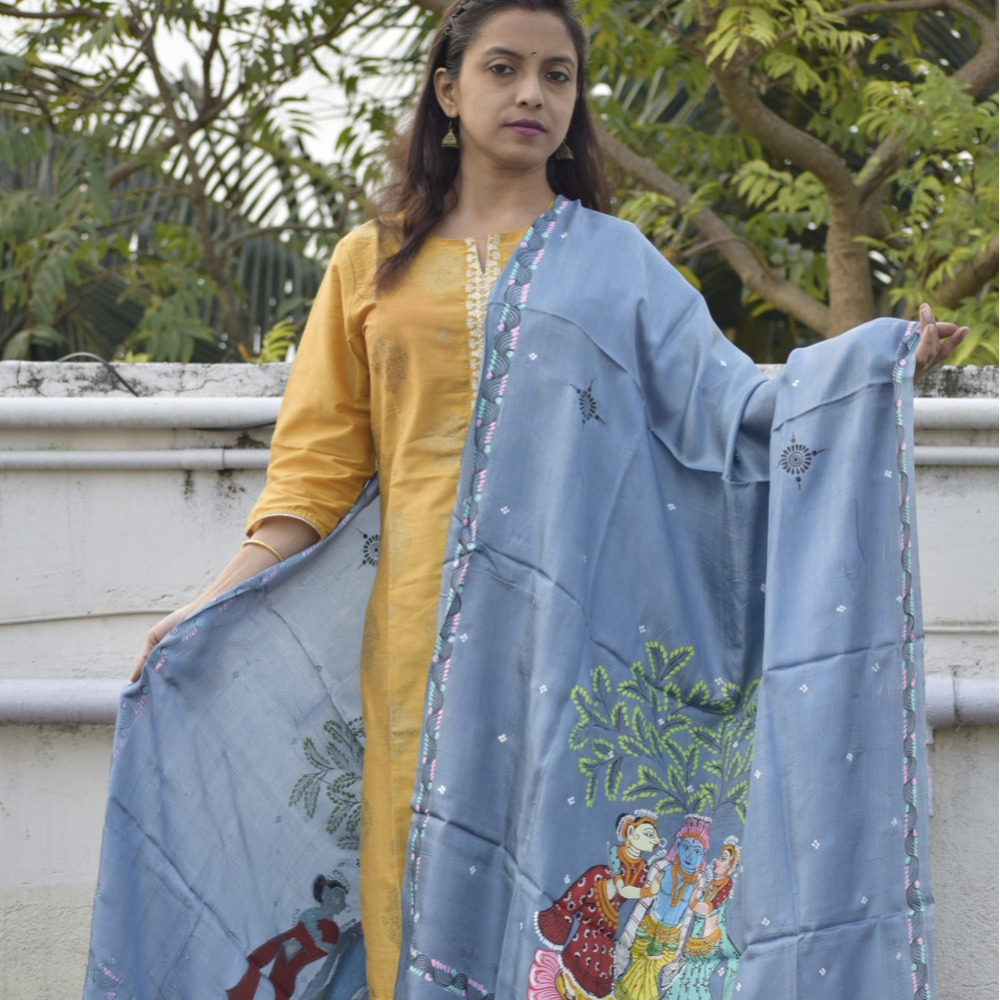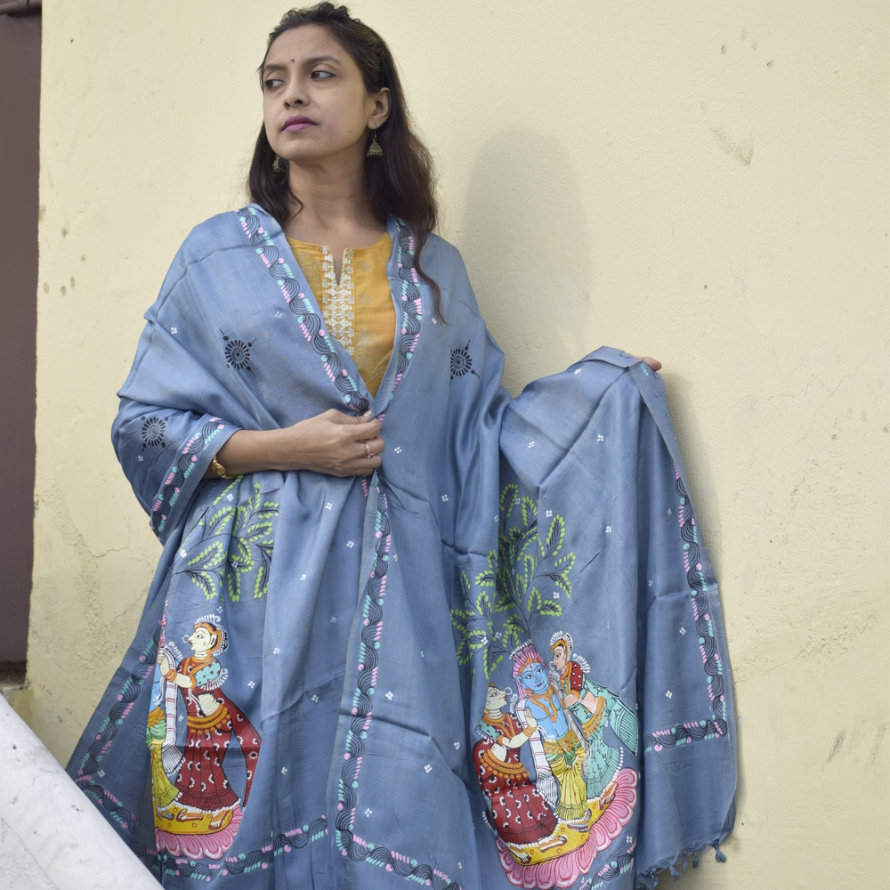 RAASLEELA - Handpainted Banana Silk Pattachitra Dupatta ,Your must Accessory.