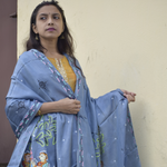 Get ready to add a touch of heritage and elegance to your winter wardrobe! We bring you the exquisite artistry of Raghurajpur, a heritage crafts village in Puri district, renowned for its master Pattachitra painters. Made from luxurious banana silk, this dupatta is a perfect blend of tradition and contemporary style. Each piece is meticulously hand-painted with intricate Pattachitra motifs, showcasing the rich cultural heritage of India. Item: Dupatta. Fabric: Banana Silk Fibre. ArtWork : Pattachitra HandPainting. Origin: Odisha,India Color: Aqua Blue. Theme: Krishna Leela. Size :36"inches X 2.5 mtrs. WashCare : Dry Cleaning.