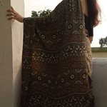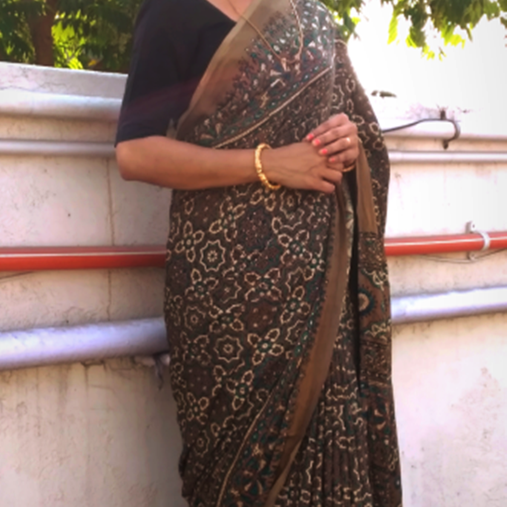Premium Modal Silk Saree Ajrakh hand-block printed. Product: Saree. Fabric: Modal Silk Shade: Yellow / Grey Artwork: Ajrakh.(Hand Block Printing) Dyes: Natural plant Extract(Pomegranate and Henna) Design: Architectural & Nature Inspired. Blouse: Included. Limited Edition Single Piece Handcrafted. Know About Your Saree: Ajrakh is a block-printed textile that is resist-dyed using natural dyes. including indigo and madder. It is made by a certain community in Kutch, Gujarat, and is distinguished by its color- blue, red with black - and its complex geometric & floral patterns. It takes skill & patience to make Ajrakh. There are between 14-16 different stages of dyeing & printing, which take 14-21 days to complete. The resulting cloth is soft against the skin and jewel-like in appearance, pleasing to touch & appealing to the eye.. Nature plays an important role in the making of Ajrakh. The craftsmen work in total harmony with their environment, where the sun, river, animals, trees and mud are all part of its making. It is the synergy between handloom textiles and vegetable dyes that creates magic. Ajrakh printing, using natural dyes is one of the oldest techniques of resist printing in India and is one of the most complex and sophisticated methods of printing.