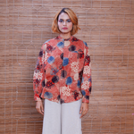"""- This is a kimono shirt featuring concealed front placket, a welt pocket, gathered sleeves and classic fitted cuffs for a streamlined look. - This is a unisex garment. The shirt is supposed to be anti-fit and comes in 3 sizes only. - Coconut shell buttons have been used. - It pairs well with a variety of bottoms like wide leg pants, skirts, cargos, and denims. - This is an Ajrakh hand-block printed Kimono dyed using natural dyes with artisans in Kutch, Gujrat. The fabric is extremely soft and breathable. - Model Fit - Priyanshu is 5'10"""" and wearing size L for a anti-fit look. We have provided the body measurements here to help you decide which size to buy. - Actual colour may vary slightly from the pictures.""" -S03_AJ_RP_03_01W
