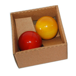 The Channapatna Toys Ball Rattle set of 2 is a charming and eco-friendly playtime accessory. Handcrafted in the traditional style of Channapatna, India, these wooden rattles feature brightly colored spherical shapes with intricate hand-painted designs. They are perfect for stimulating a child's sensory development, with gentle rattling sounds and smooth, safe surfaces for teething babies to explore. Crafted from sustainable materials, these rattles are not only delightful for children but also promote sustainability and craftsmanship in toy-making, making them an ideal choice for conscientious parents and caregivers