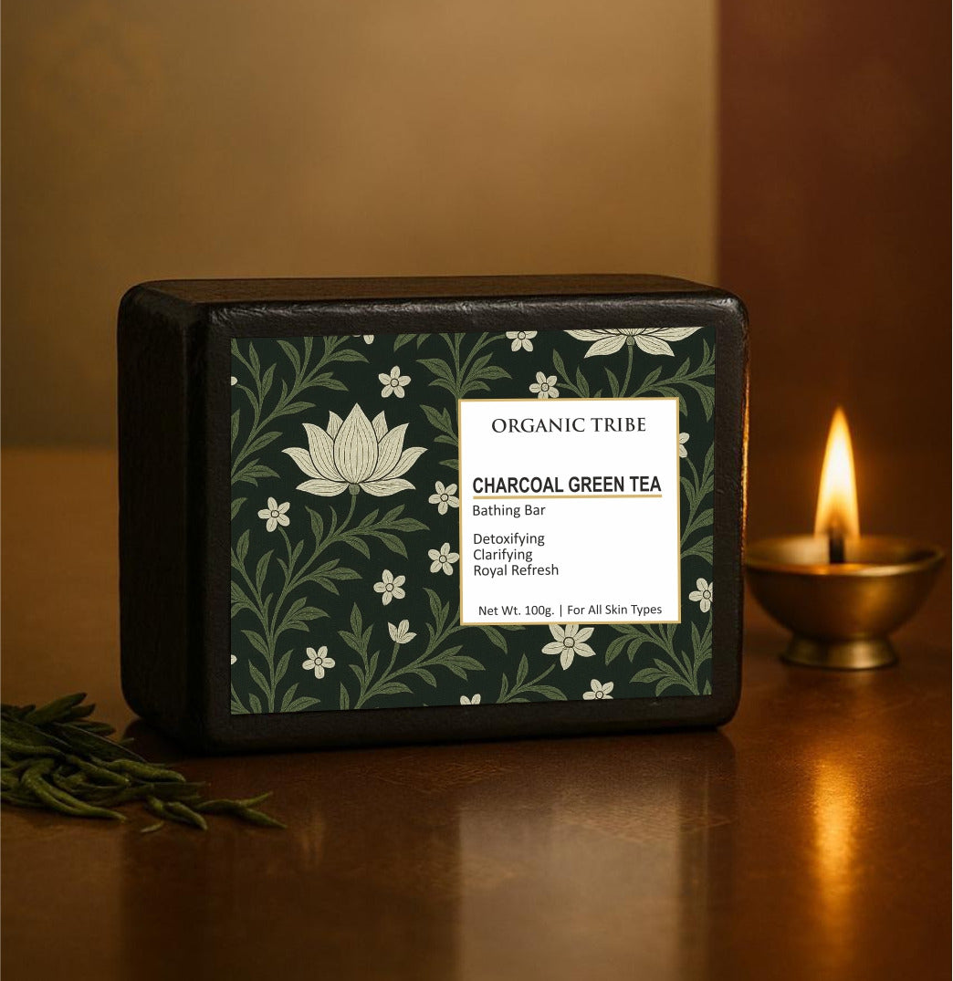 Free from harsh chemicals and synthetic additives, Charcoal Green Tea Soap transforms your bath into a clean, mindful ritual—where purity meets gentle care, the Organic Tribe way.
