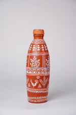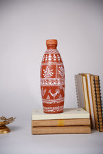 Bottle handmade clay water bottle with Warli art