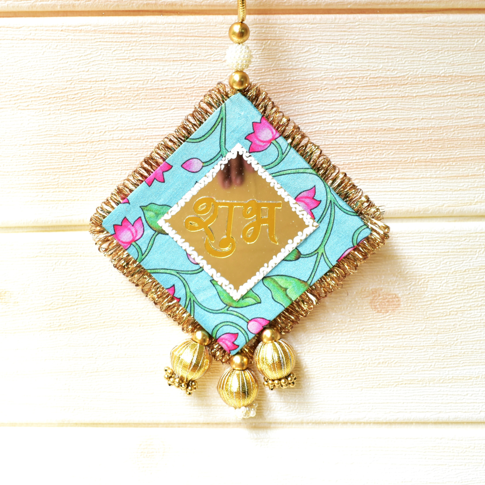 Elegant Teal Green and Pink Shubh Labh Wall Decor & Door Hanging Set