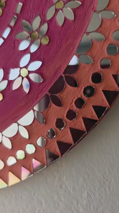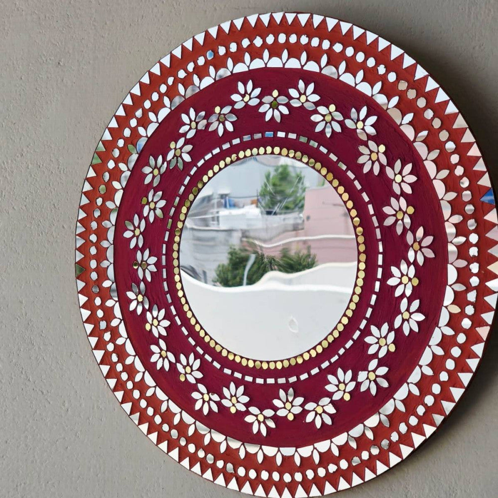 12in/30cms MDF round decorative, real mirror wall hanging decor. very attractive, hooks attached N ready to hang. Suits for home/office wall decor and gifting.