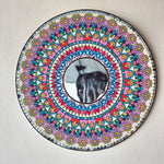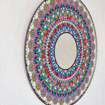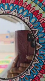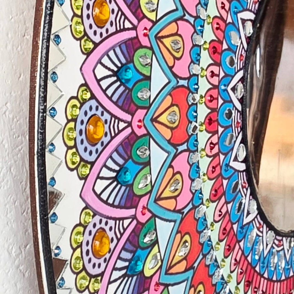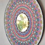 15in/40cm MDF round acrylic mirror decorative wall hanging, decorated with shining stones N mirrors, handmade, hooks attached, acrylic mirror in center, ready to hang. suits for office/home decor and gifting.