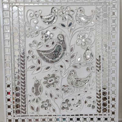 Number of contents: 01decorated MDF base lippan work. Material: MDF board, mirrors, stones/kundans, acrylic paint. Length and breadth: approx 25"x19.5" Thickness: approx 3.5 mm Weight: approx 1.345kg Pattern : handmade Lippan work Country of origin: India About this product: It makes your home beautiful. Looks absolutely exquisite during festival and functions. Traditional homemade item. Decorate your home, floor, table, Pooja room, offices,main entrance, stairs wall or the Wall you want to decorate. Best buy gifting option for occasions like birthdays , weddings,housewarming party gift etc. Very economical and elegant choice. Must have items for festivals and Indian occasions. A great way to convey your love and best wishes. Reminds them of you every time they look at it. Will be made on order. Can be customised. Shipping:7-9 working days. Care : Handle with care.Wipe it with a clean and dry cloth to remove dust. Disclaimer : The images are for illustration purposes only. The actual colour maybe slightly different from the images due to photographic effects and lightning. The actual product can be slightly different from the one shown in the picture as these products are handmade.