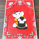 Bless your home with this is Stunning painting of Bal Ganesh ji, Made by using Acrylic Colors. Pichwai art border pattern is made to beautify this Painting. Its a perfect art work to decorate your home. Size -Length 12"x Width 9" color-Red, White and Black Material-Mdf Board ,Clay, Acrylic Colors, Stones and Mirrors Care and Handling -"Each product is carefully handcrafted and handpainted. The handcrafted product may have some imperfections. Please treat minor imperfections as part of the art form. To clean, wipe with a dry cloth. Avoid direct contact with water."