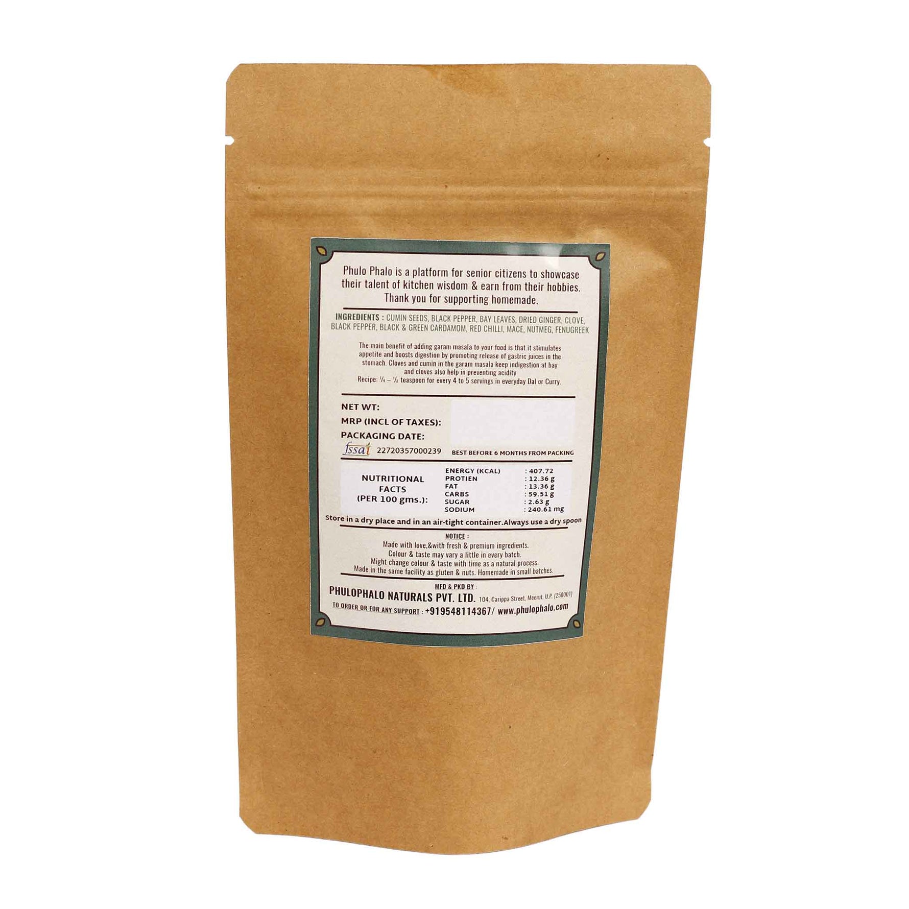 Our Garam Masala is a journey through time and tradition, filling the air with aromatic nostalgia reminiscent of home-cooked meals and cherished family gatherings. Expertly crafted, it possesses the magical ability to transform everyday dishes into extraordinary feasts. Beyond its delightful taste, this spice blend harbours potential health benefits. Ingredients like cloves, and cardamom may aid digestion, regulate blood sugar, and offer antioxidants. Even with a pinch of this masala, these properties can positively impact your well-being. But it's not just about flavour and health – it's an immersive sensory experience. Made with premium raw ingredients and free from fillers like coriander seeds, it's our founder’s family recipe. Our Garam Masala is made with love by Madhu ji [https://www.instagram.com/phulophaloindia?igsh=ZGN4bGtlY3VzY2k5] from Meerut, Uttar Pradesh. How to Use Enhance your culinary creations with just a small pinch of our fragrant Garam Masala. Add it to your curries, lentils, mughlai or non-vegetarian dishes or any dish of your choice, and let its enchanting aroma and rich flavour elevate your dining experience to new heights. Storage & Shelf Life Store in air-tight containers in a cool, dry place. The product’s shelf life is 12 months from the date of packaging. Allergens Produced in a facility that handles nuts and gluten.