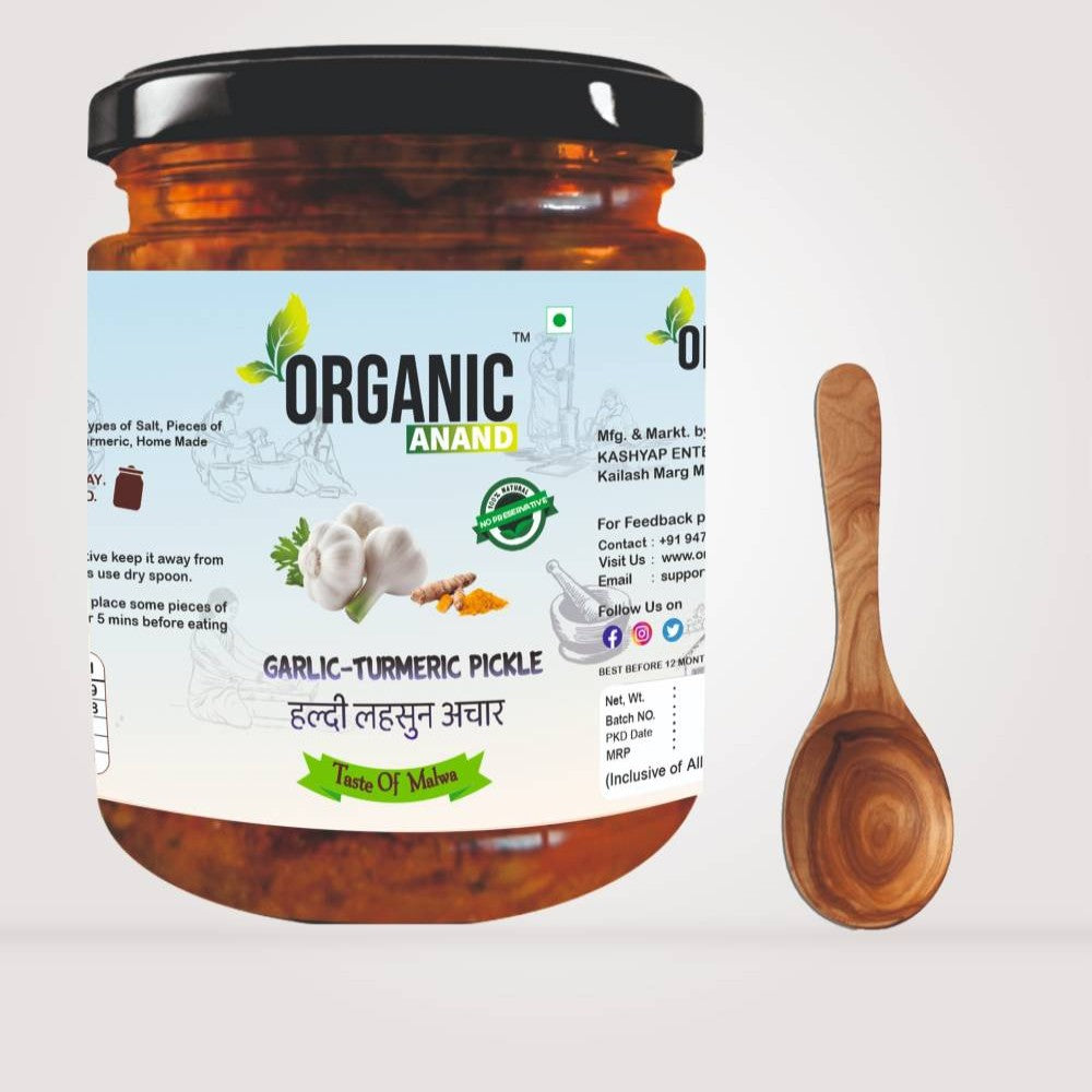 Organic Anand Pickles are completely Home-made including Pickle Masala, which are prepared in small batches with high quality ingredients using authentic traditional process to retain it's authentic taste and health benefits. We procure raw ingredients from two sources, Firstly from our own farms in Madhya Pradesh and secondly from local market. We use only Kachi ghani Mustard oil and all our items are preservative free. We use sustainable Eco friendly packaging to make our planet green again free sheesham spoon.