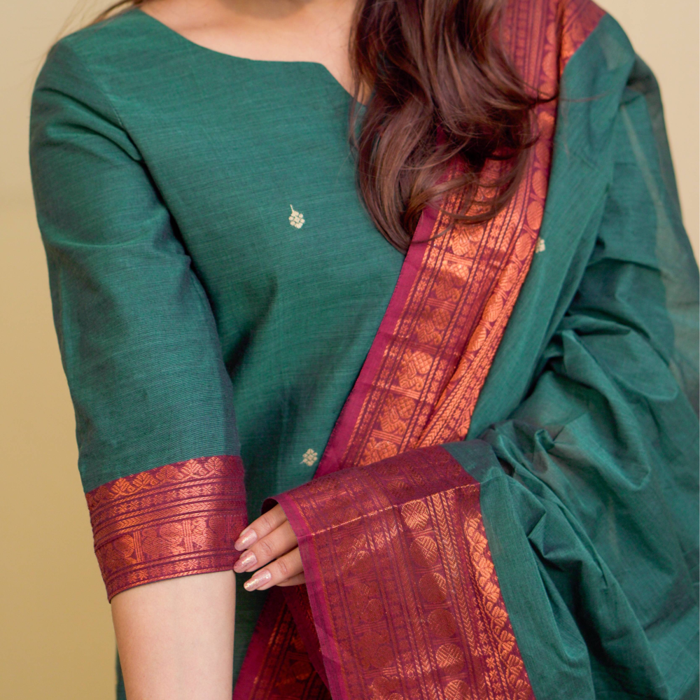 Geet - Kurti with dupatta in pure kanchi cotton in Teal color