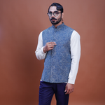 Hand block printed Ajrakh Clear Sky Nehru Jacket