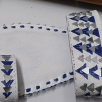 Lovely combination of white and blue with mirrors,in this pair of stylish Kolhapuri z.A must have pattern to enhance your styling and persona. Colour can be customised