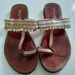 Hand designed kolhapuriz only for you with anti skid feature These kolhapuriz are all hand designed and painted with lot of love and passion .The pattern and colour can be customised as per the customer 's requirements. *Also if the client needs the matching material to be used on their footwear can give their leftover prices of embroidery and embellishments with the help of which we can design the footwear only for you,* The design are unique and can be worn both with western and Indian outfits It can be worn in office regularly as well as with formals and party outfits,It's a must-have in your wardrobe which will enhance and give a new grace to your personality and styling It's a try to create a new style of fashion footwear together with promoting Indian art and craft and Indian craftsmen ship