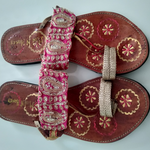 Hand designed kolhapuriz only for you with anti skid feature These kolhapuriz are all hand designed and painted with lot of love and passion .The pattern and colour can be customised as per the customer 's requirements. *Also if the client needs the matching material to be used on their footwear can give their leftover prices of embroidery and embellishments with the help of which we can design the footwear only for you,* The design are unique and can be worn both with western and Indian outfits It can be worn in office regularly as well as with formals and party outfits,It's a must-have in your wardrobe which will enhance and give a new grace to your personality and styling It's a try to create a new style of fashion footwear together with promoting Indian art and craft and Indian craftsmen ship