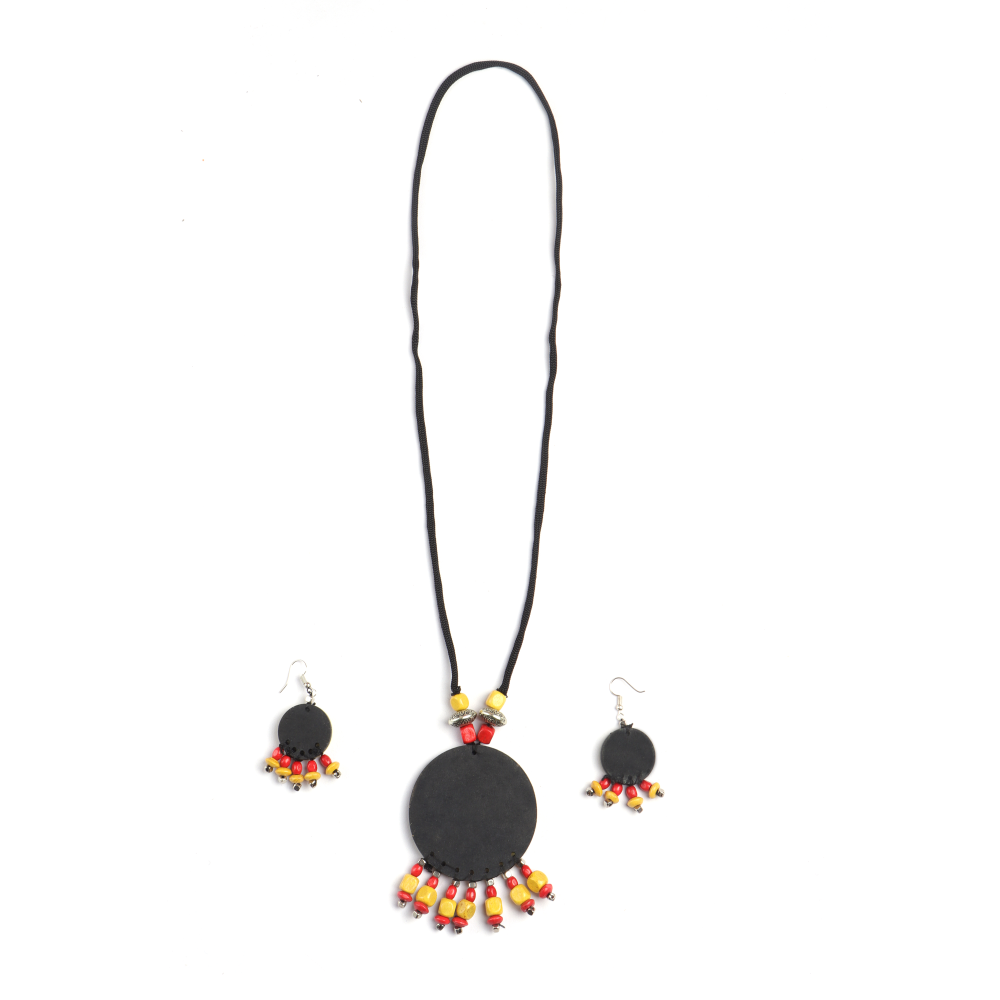 Handmade Handpainted Warli MDF Jewellery (Yellow)