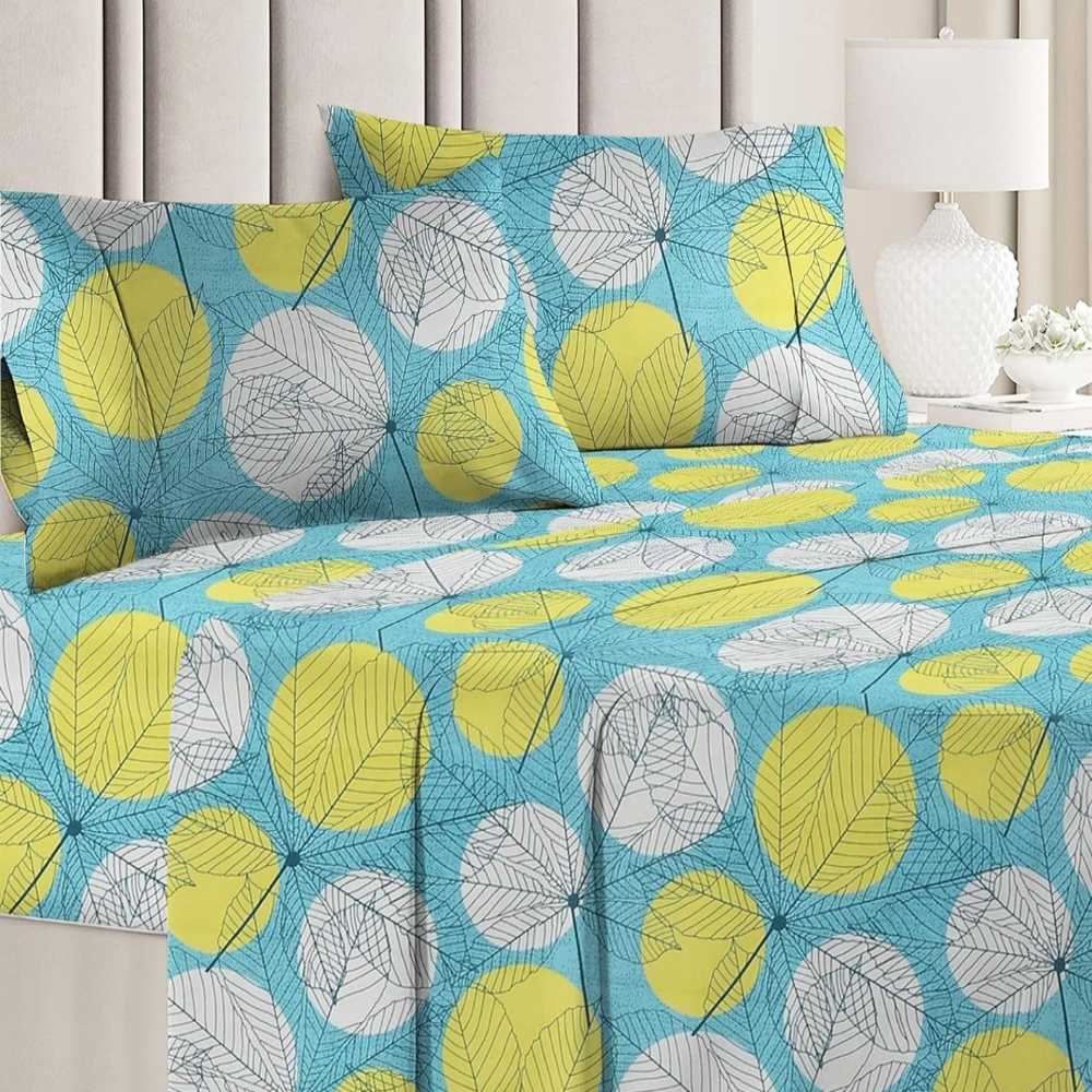 3D Printed 144 TC Cotton Double Bedsheet Set with 2 King Size Pillow Covers Elevate your bedroom decor with our stunning 3D printed double bedsheet set, featuring an exquisite teal and white circle design. Crafted from ultra-soft 144 TC cotton, this luxurious bedsheet set promises a comfortable sleeping experience. *Product Details:* - Material: 144 TC Cotton - Size: Double Bed Sheet (90x90 cms) with 2 King Size Pillow Covers - Color: Teal with White Circle - Pattern: 3D Printed Design *Soft, Breathable, and Durable:* Our 144 TC cotton bedsheet set is woven to perfection, ensuring a soft, breathable, and durable fabric that will withstand repeated washing and use. *Wash Care Instructions:* To keep your bedsheet set looking its best: - Machine wash in cold water (below 30°C) - Use mild detergent - Avoid bleach or harsh chemicals - Tumble dry on low heat - Iron on medium heat *What's Included:* - 1 Double Bed Sheet (90x90 cms) - 2 King Size Pillow Covers *Order Now:* Transform your bedroom into a serene oasis with our 3D printed bedsheet set. Order now and experience the perfect blend of style, comfort, and durability!