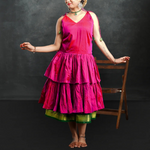 Using layers to create the drape effect, the outfit highlights playfulness and joy and has been our top design since it's launch! About the weave Kalyani Pattu fabric is a blend of silk and cotton fibres and has a lustrous sheen and a lightweight and luxurious feel to the fabric when draped or designed into an outfit. It is also woven into sarees and is found in many unique and vivid colour combinations. Fabric Care Kalyani Pattu : Hand wash in cold water with a mild detergent and dry in shade only.