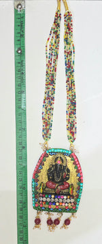 Lord Ganesha pillayar in vinrant multicoloured and decorated with stones, terracotta jewellery set with matching jumka earings and multicolour dori set. Completely made of airdry clay, so light weight and easy maintanence. Ai generated picture and measurement picture for your reference.