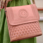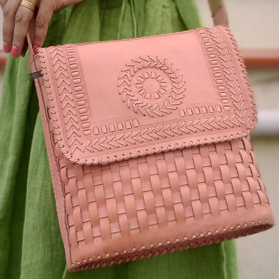 Handbraided Designer Leather bag with Deep pocket to hold your Valuables,Daily's and wallet etc. Has wide & adjustable strap, easy to carry as cross shoulder or otherwise. Handcrafted thoughtfully by veteran Leather Artist using handbraid and twinning technique design patterns. Add glam to your DesignerWear with our Cross body sling bag handcrafted in genuine cruelty free leather. . Choose your style and you will never go wrong with our handcrafted fashion bags. Product Type : Side Bag(Medium) Material : Cruelty Free Leather. Colour : Matt Cream . Size :13 inches" x 12inches" Print or Shade : Bright . Closure : Flip Lock Lining : Cotton Natural dyed Handblockprinted. Inside : 1 zip & 1 open pocket Speciality : Handcrafted Cruelty Free Leather Handle drop: Side Sling Our Handbags are designed to perfection and offer great style, fashion, and utility.