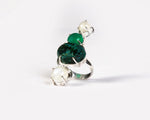 Long finger ring inspired by the colors of Seabed. Adjustable style to fit any finger size. Metal used: Brass with Sterling silver plating. Stone: Chrysocolla (Origin : Arizona), Green Onyx, Moonstone To learn about the beautiful gemstones used for this style, read here . Dimensions: 4.5cm long Care Instructions: Do not leave it exposed to air / water / chemical (deo or perfume). Store it wrapped in soft cotton cloth.